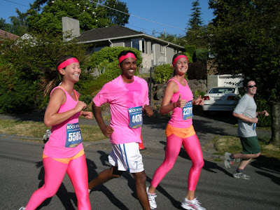As I was running with Michelle, I asked her if you were going to come back and finish the race with her. She said no, but I assumed it was because you were too tired, not because you were in a tussle with Seattle's Finest. Silly me.